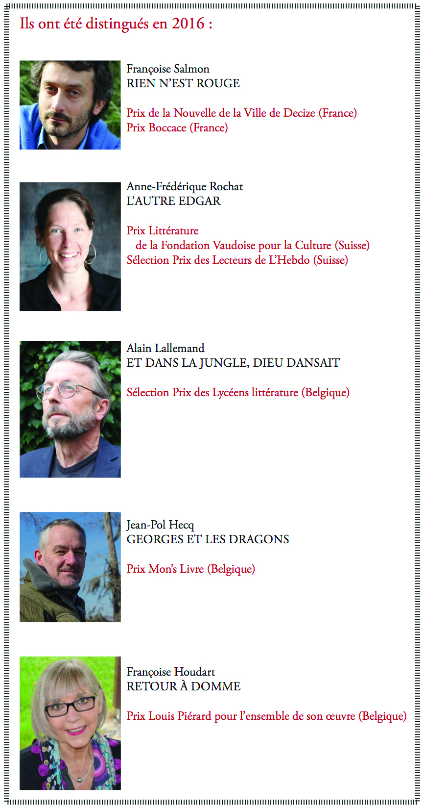 Après 31 ans et 552 titres parus, les Editions Luce Wilquin cessent leurs activités ce 31 juillet 2019, alors que la maison d’édition se porte au mieux. En effet, seuls des problèmes de santé dans le chef de sa fondatrice expliquent ce choix difficile. Une satisfaction toutefois : après Geneviève Damas, Véronique Bergen, Kenan Görgün, Emmanuelle Favier, Laure Mi Hyun Croset, Valérie Nimal et Valérie Cohen, vous allez retrouver prochainement chez des éditeurs prestigieux nombre des auteurs découverts par les Editions Luce Wilquin, et ceci pour leur nouveauté ou la version en poche de titres publiés ici. Soyez donc attentifs à l’actualité de Mathilde Alet, Isabelle Bary, Alain Lallemand, Michel Claise, notamment.
